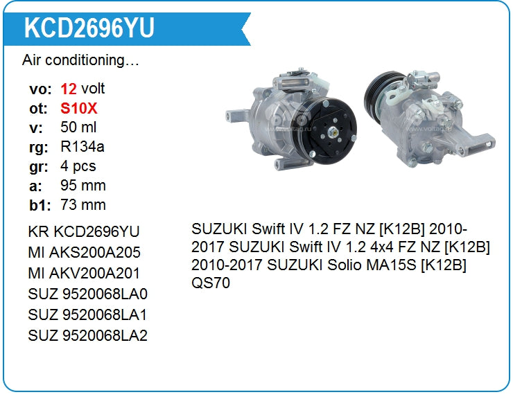 Voltage: 12V Compressor ID: QS70 Refrigerant: R134a Grooves: 4pk Pulley Diameter (mm): 95